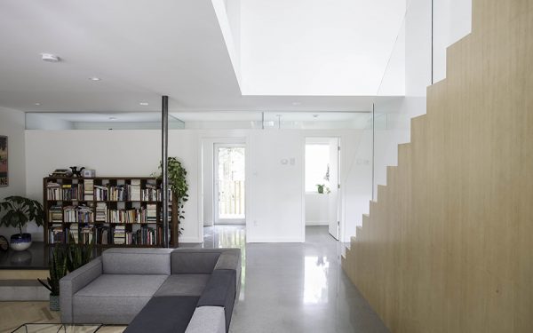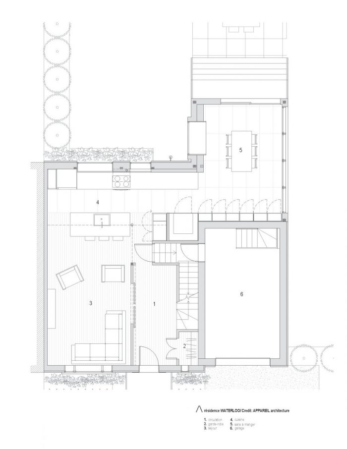 For this project, the APPAREIL construction team was authorized to renovate its public space. Use lighting to provide a unique view in the backyard. Internally, the kitchen has been redesigned to promote dialogue between old and new elements. Responsive owners want to keep dark floors, and the integrated materials are brighter and more neutral. In sharp contrast to this flawless white environment, the surface of the central wooden module is made of wood stripe. Made of walnut wood, this element brings a touch of warmth to the existing wooden floor. It can be used as a sideboard and pantry to store all the necessities. The space is therefore unobstructed and looks more spacious. The renovation extends further to the entire first floor, making the space transparent and creating a welcoming room.