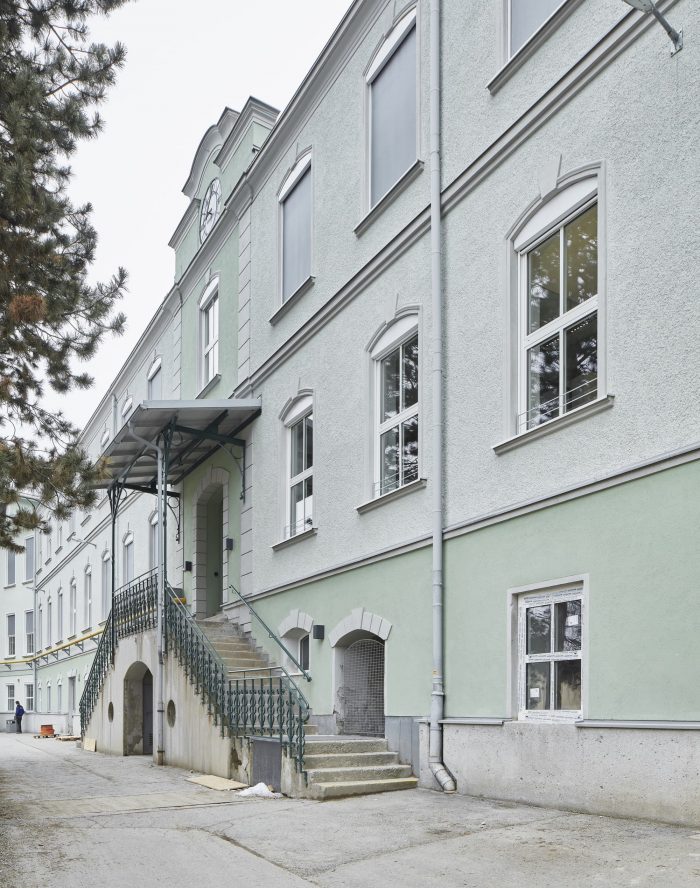 Built in 1906, the building 6 carried typical elements of early-industrial architecture around the turn of the century. Behind a palazzo-like façade with outdoor-access stairs, the indoor distribution staircase introduces four “polishing workshops”.