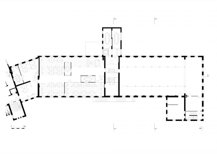 钢梁和水泥拱顶承载着楼梯间和平台,铸铁柱和木质天花板定义了 "抛光车间 "的特征。多年来,清晰的结构和简单的空间顺序已经消失了。