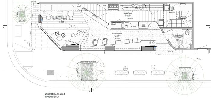 通过专门为咖啡馆设计的桌子和设计师Marcelo Caruso的椅子,我们用中性和复杂的元素来组织布局。