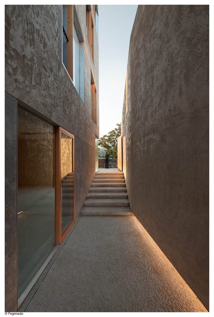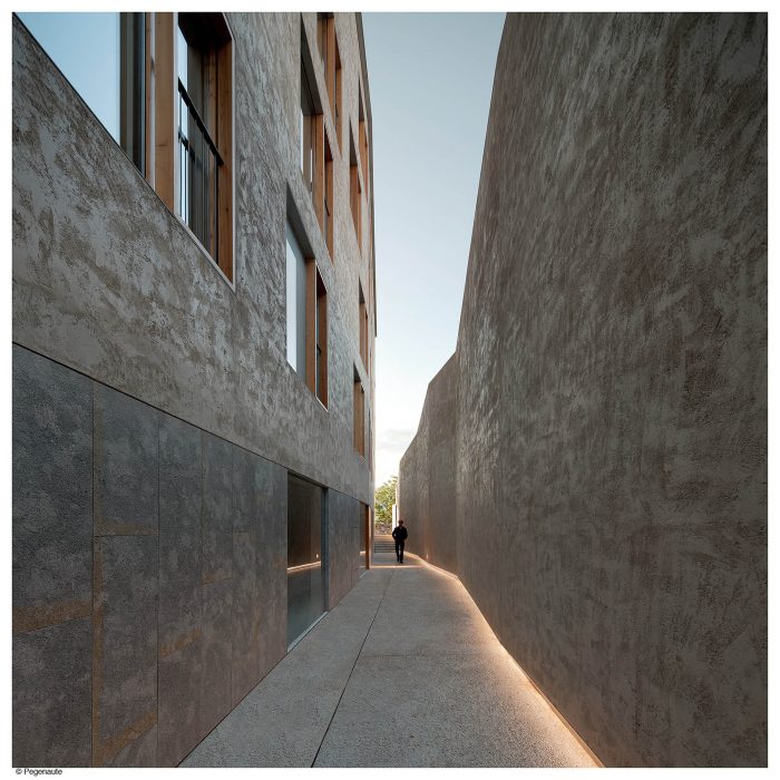 该项目被纳入了一个高关注度的城市计划中。新的建筑,需要拆除现有的建筑,必须完成原有的街区,并面对一个新的城市空间,即中世纪城墙上的新一代广场。由于困难的经济形势,这个城市发展被推迟了,在项目中加入了一个半私人性质的通道的定义,这使得该倡议可行。