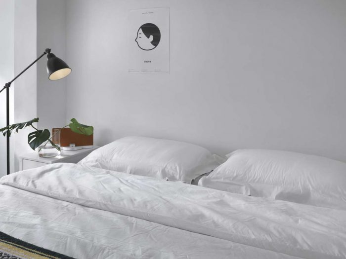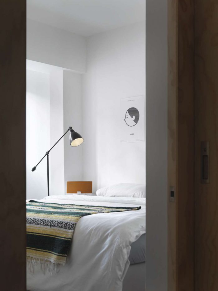 在与新主人协商后,所选材料参考了他长大的环境,从而赋予翻新的公寓一种熟悉感。白色和灰色的双色墙壁和水泥地板凸显了设计的简约,松木胶合板传达了熟悉的住宅氛围,而裸露的砖墙描绘了工作学习区域。选择的小型家具,如浅蓝色沙发,简约的红色控制台和用作咖啡桌的仿旧木箱,进一步突出了公寓的个性,同时又不破坏装饰的柔和氛围,实现了简约和个性且没有矛盾的概念。
