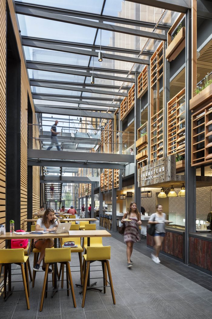 新的西校园联盟还带来了烹饪食品的探索和教育,容纳了12个餐饮场所,与当地供应商和食品概念合作,展示了国际和本地美食。新的餐饮核心提供以新鲜食材和健康、从农场到餐桌的有机选择为特色的定制烹饪,旨在鼓励健康的生活方式选择。建筑内不提供苏打水,而是免费提供一系列手工制作的调味水。