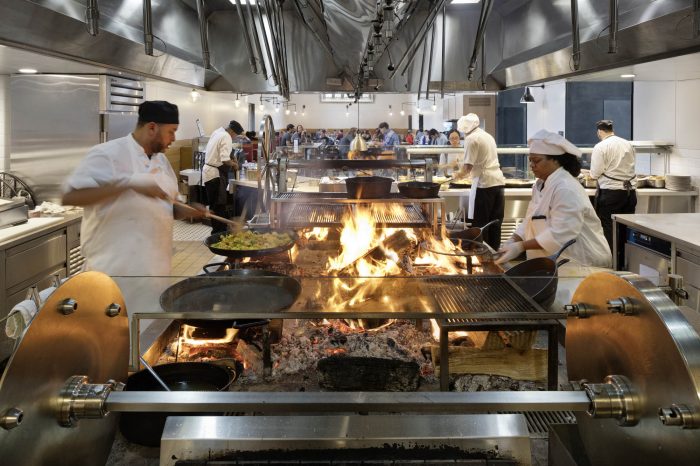 The new West Campus Union also brings forward culinary food exploration and education, housing 12 dining venues showcasing international and local cuisines, in collaboration with local vendors and food concepts. The new dining core provides made-to-order cooking featuring fresh ingredients and healthy, farm-to-fork organic options intended to encourage healthy lifestyle choices. No soda is served in the building, rather a range of hand-made flavored waters are made available free of charge.