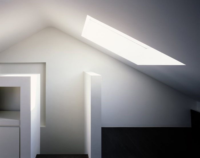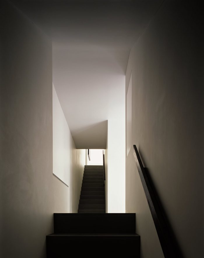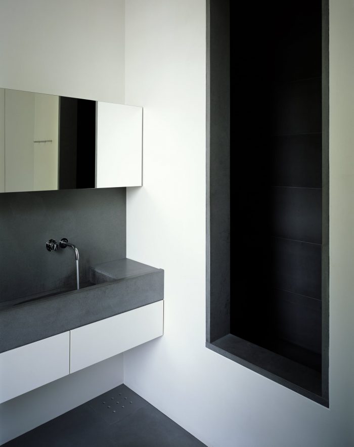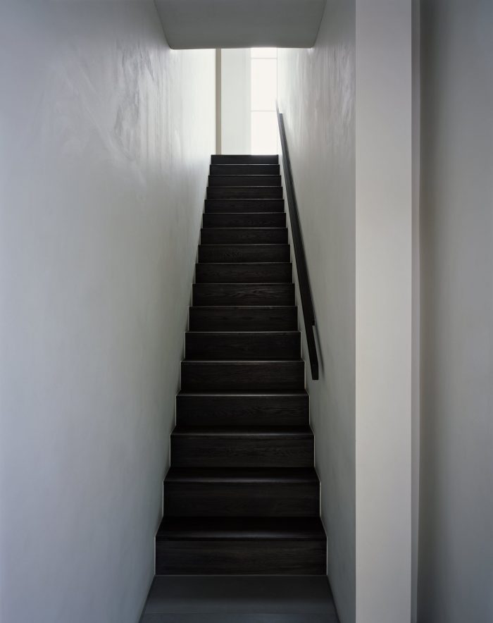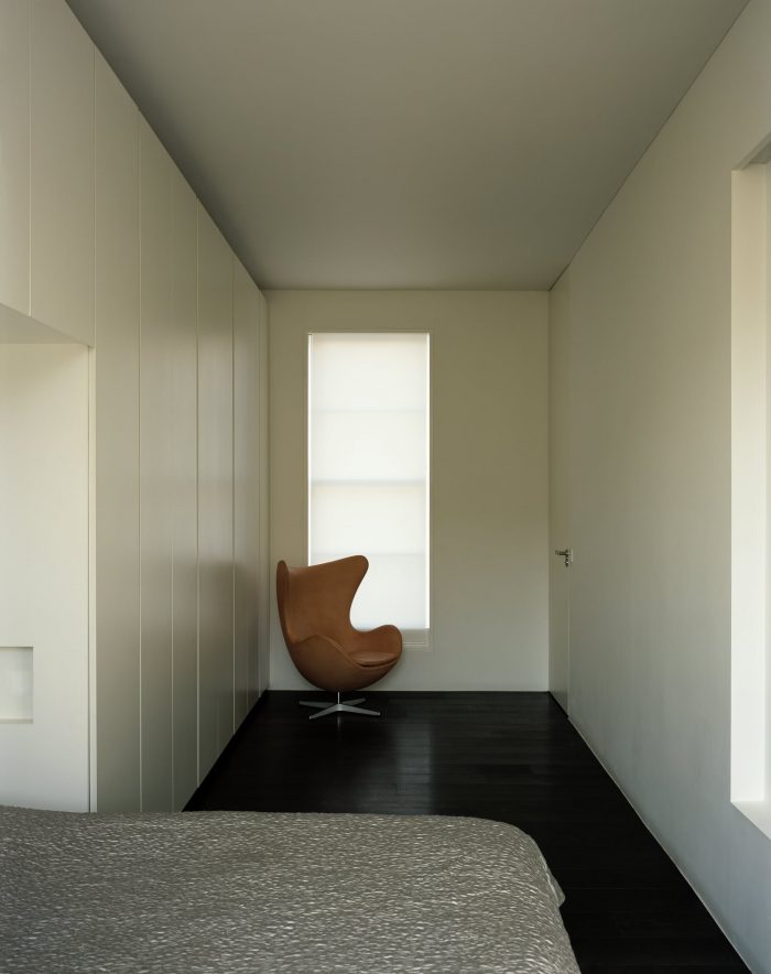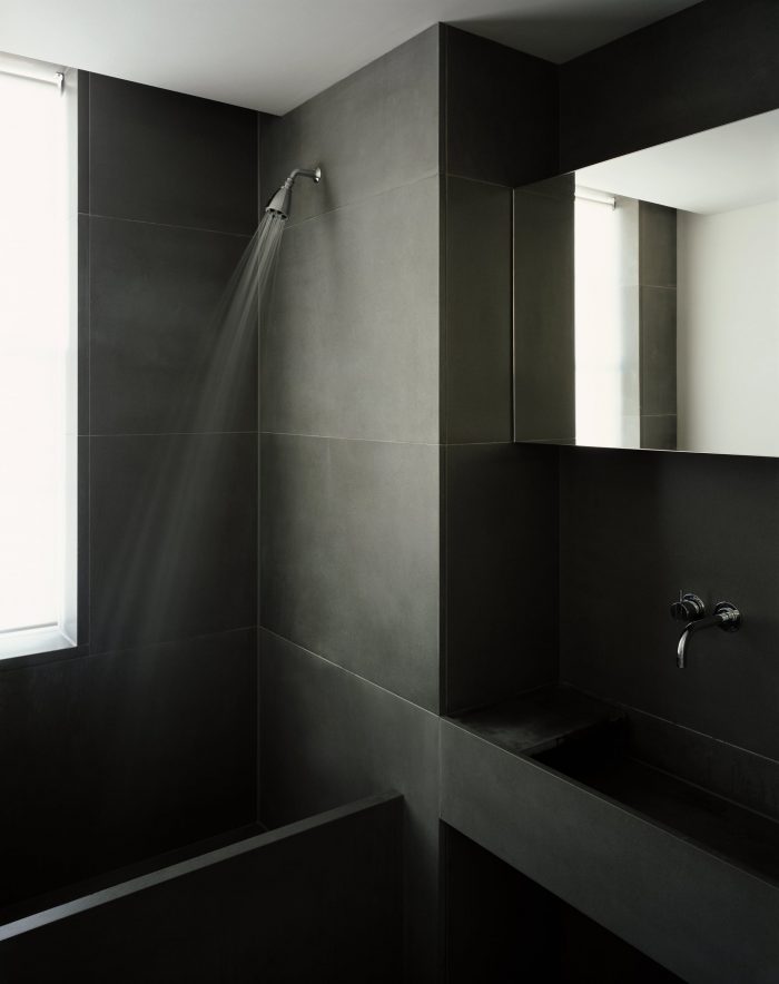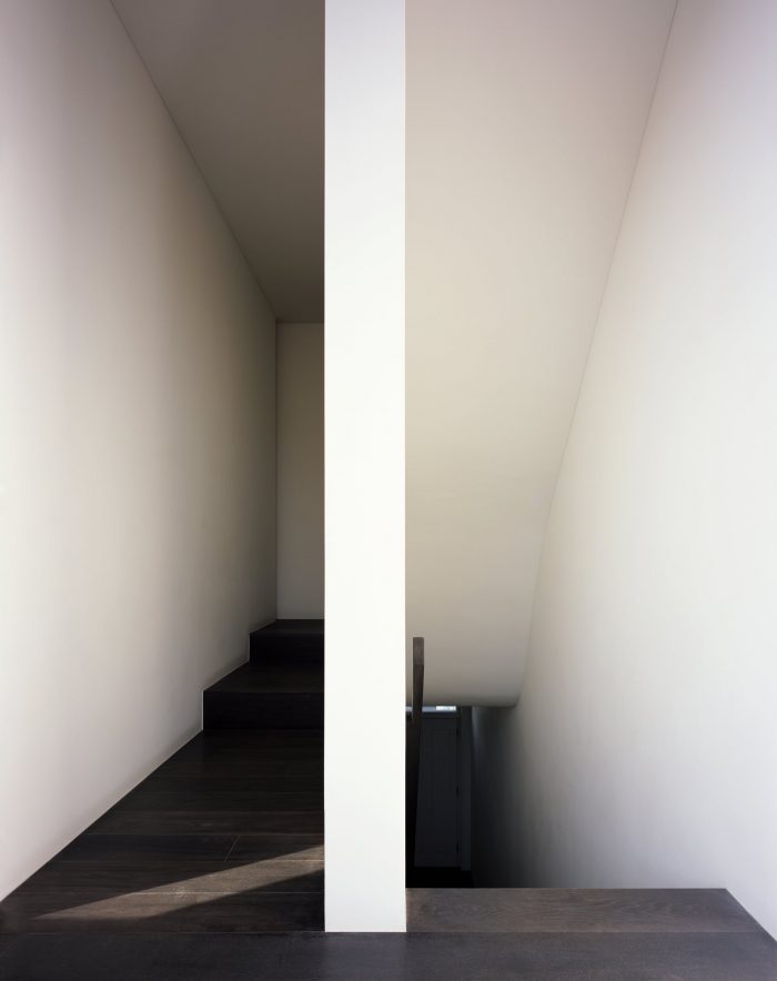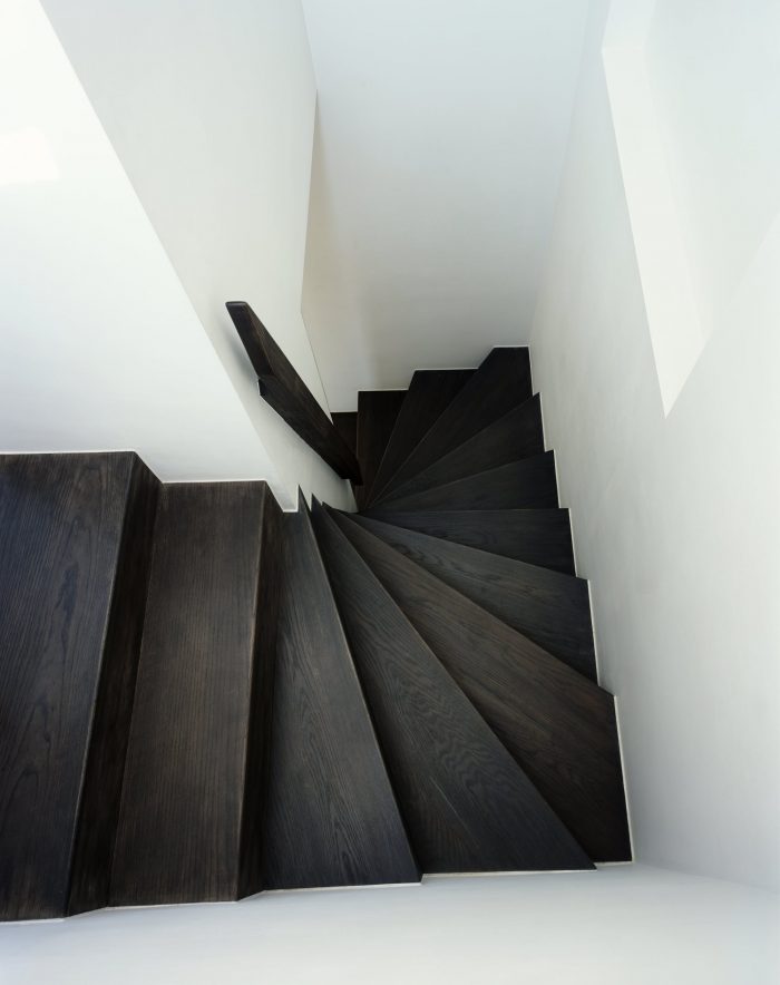 Level 1 is dedicated to the Master suite, with the upper levels accommodating the 4 children. The carefully considered simple palette of materials have been chosen to absorb and reflect light and provide continuous surfaces for the clients substantial art collection. Florentine Pietra Serena limestone is used throughout the living spaces and bathrooms, and grey oiled Oak is the primary floor surface in all bedrooms.