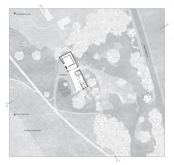 Overlooking the historic landscape of lake, wood and pasture, The Weston, a new visitor centre and gallery, emerges from its hillside setting in Yorkshire Sculpture Park, West Yorkshire, England. Set within a former quarry, the 673m2 building includes a gallery, interpretation space, restaurant and shop.