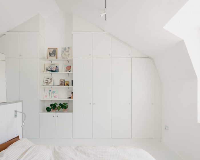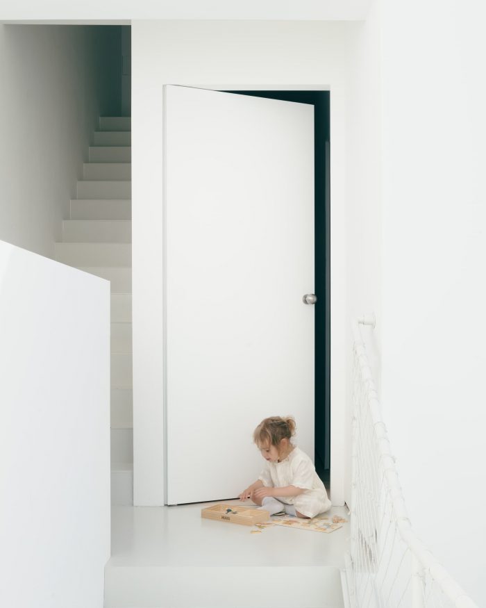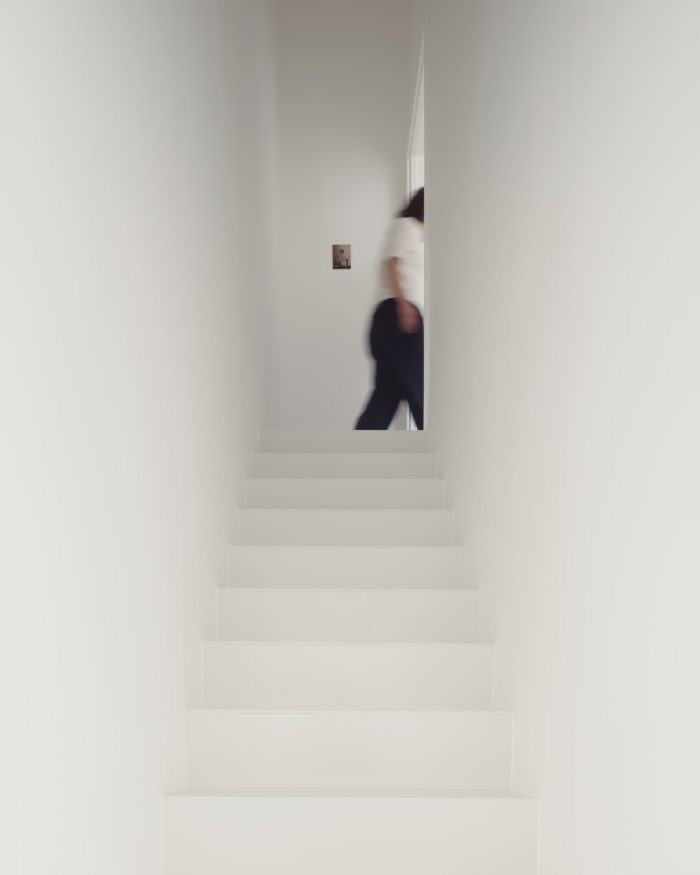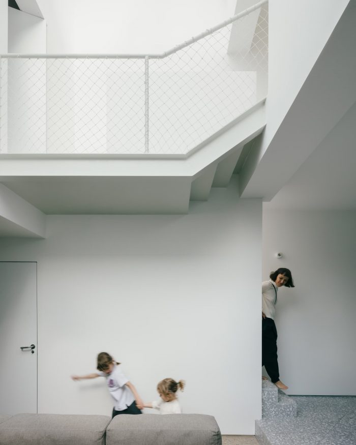 The “old” host building and the new volumes are connected by a conceptual glass “bridge”; this atrium brings daylight into the center of the house while visually and physically connecting all floor levels. The configuration of the “bridge” embodies the “memory” of the old building.