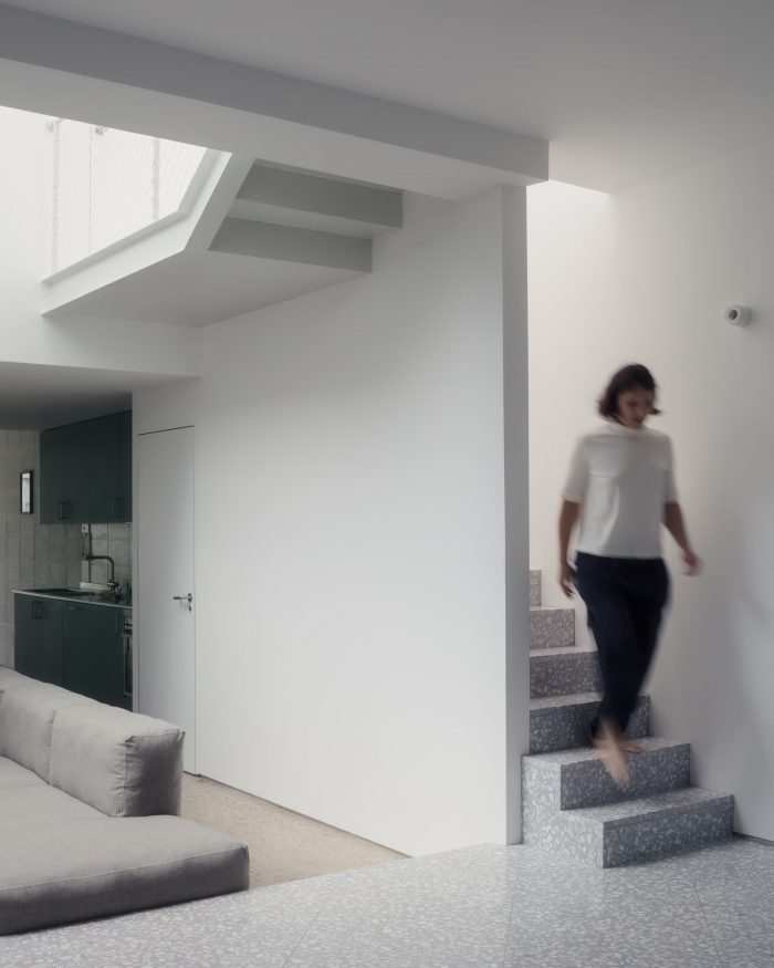 该项目是对一个现有的维多利亚式露台的扩建和改造。它被设想为城市密集型生活的原型,在当地的规划限制下,开发被深思熟虑地最大化了。传统类型的背靠花园的排屋已被改造成一种新的类型--天井屋。它成功地应对了在拥挤的城市景观背景下建造体验丰富的住宅这一挑战。