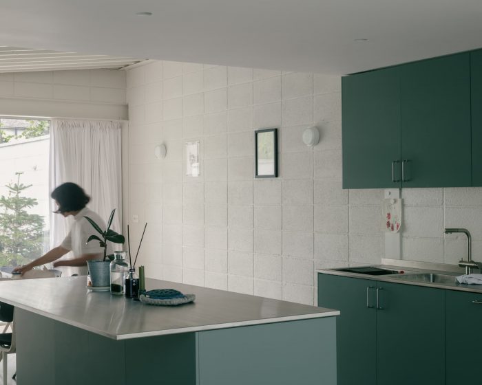Being inspired by Belgian brutalism, the exposed blockwork with highly recycled content delineate the whole perimeter of the site as a uniting theme and contriving ascetic domesticity. The blockwork, the steel beams and columns, the floor, and the metal deck - most of the materials have been left true and exposed. The new additions’ façade has been clad in off-white corrugated steel sheets matching to the aluminum color of window frames and doors. This enables the impression of lightness, subtle reflections of the sunlight, but also echoing of the white elements of the surrounding urban fabric.