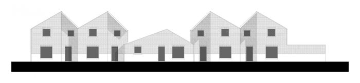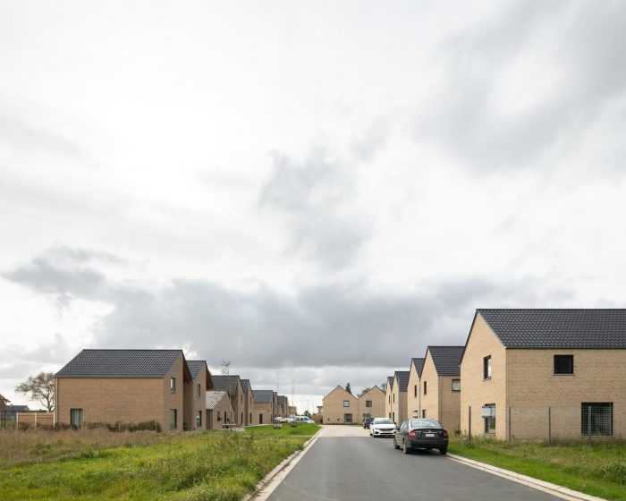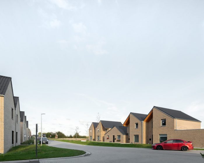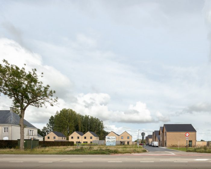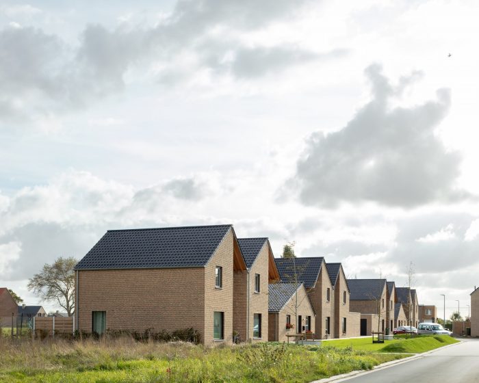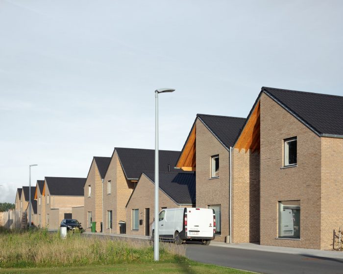 For a new social residential area in Oost-Vleteren, we designed high-quality housing, with a focus on the spatial layout of the plan, a dynamic roof landscape, and an uncommon detailing. The architecture of the connected houses is surprising and offers each house its own identity, a clearly readable entrance zone, and is composed out of a varied and daring material pallet.