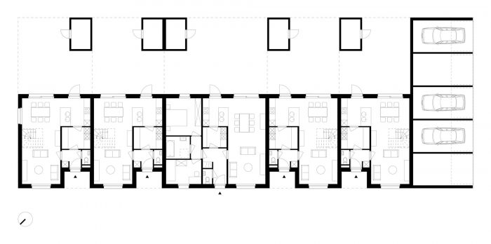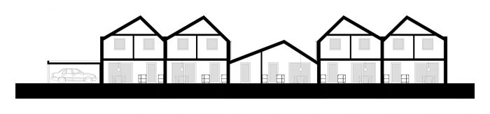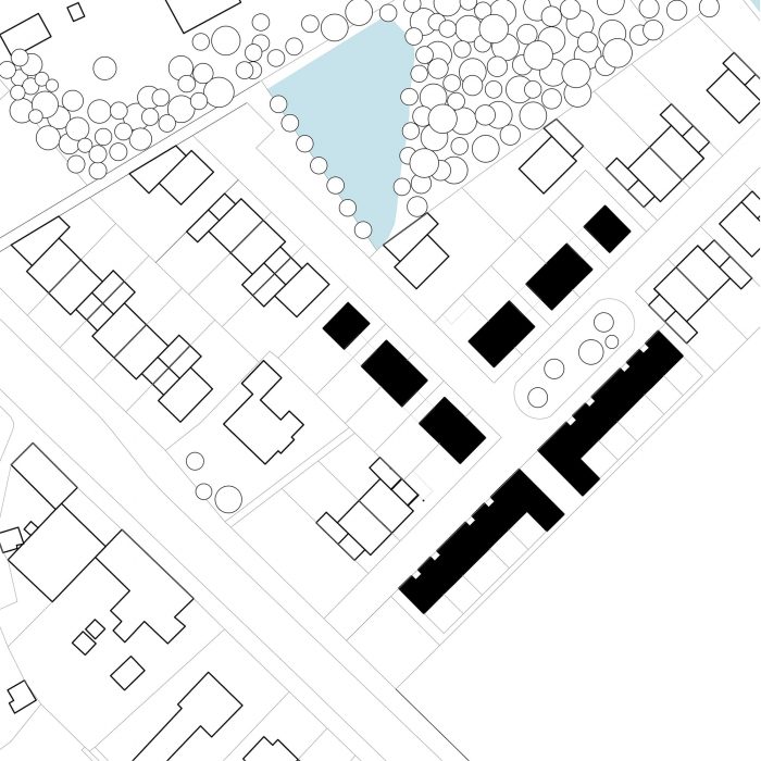 The design, which was developed within an existing master plan, generates a captivating urban quality with the design of semi-detached houses under double gable roofs, perpendicular to the façade. The uncommon detailing leads to a strong identity of the new neighborhood: