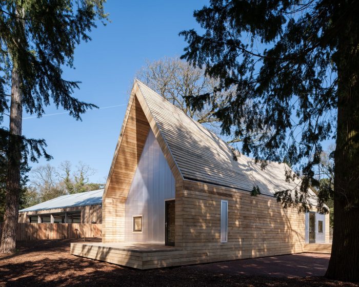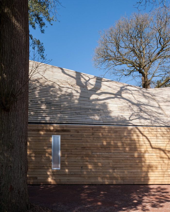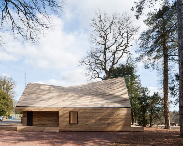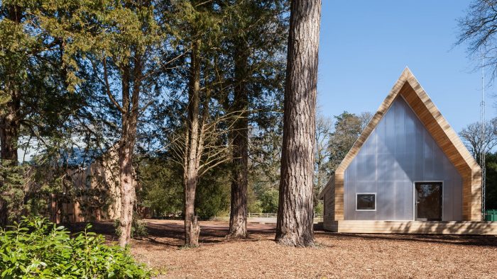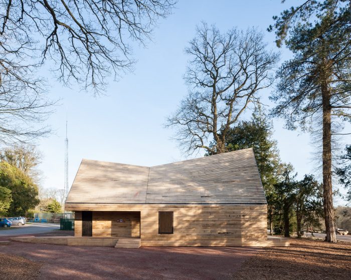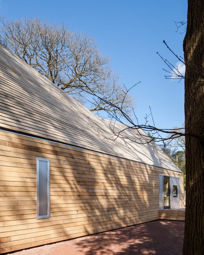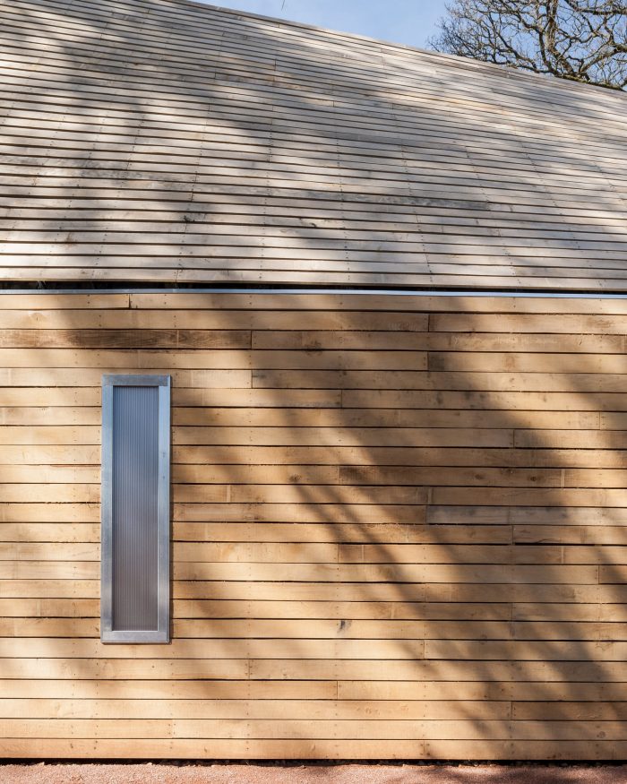 Invisible Studio were commissioned to build 2 new buildings comprising their new tree management centre – which is a Machinery Store and a Welfare Facility for the Tree Team. We particularly wanted to use the timber from the arboretum – as the client had an extraordinary resource which they hadn’t exploited previously for building. As a result, all the timber was grown and milled on site, and used untreated for the construction with no further processing.