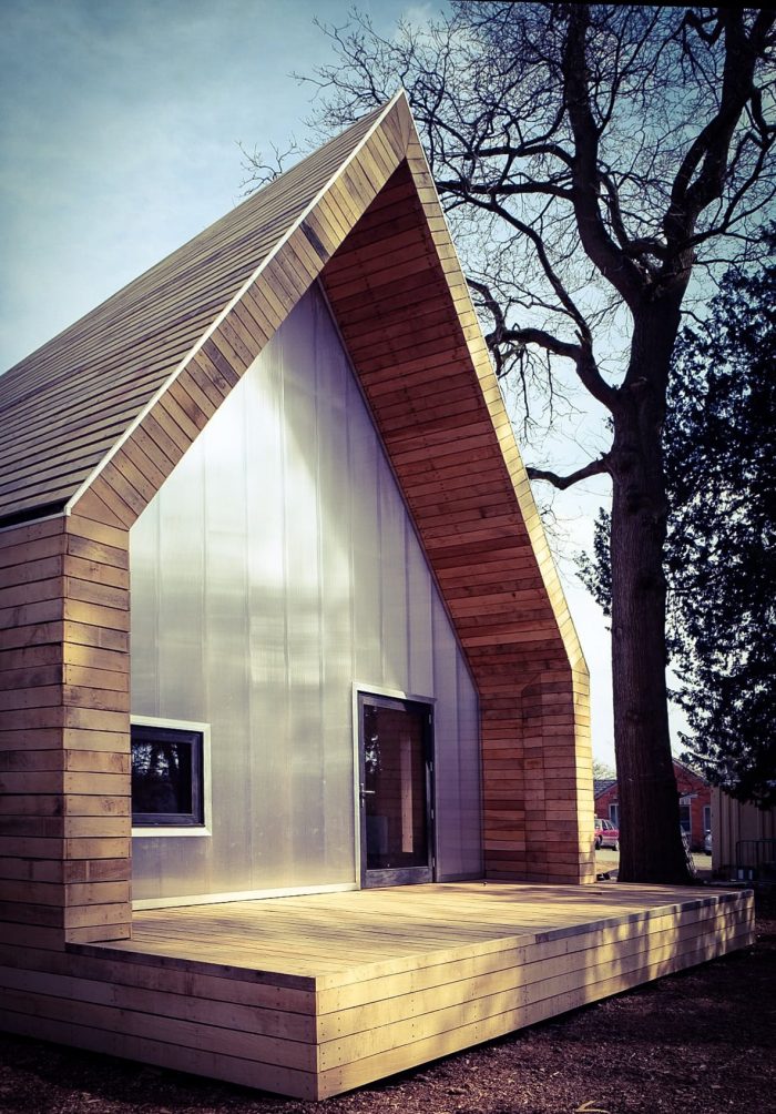 One of our interests is how you can use imprecise materials to make a precise building, and this is something we have enjoyed with this project, which was constructed with volunteers working alongside a skilled contractor.