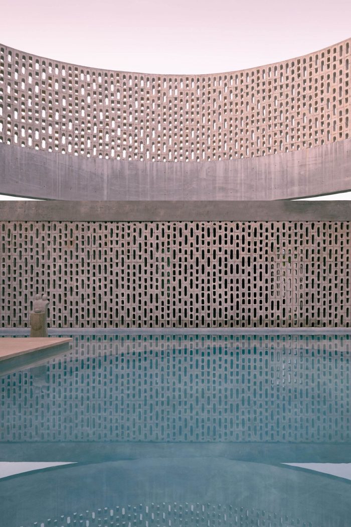 利用地块的朝向,中央圆柱体的功能是允许光线通过中央空间,也就是游泳池所在的地方,然而,鉴于其巨大的倾斜度,它在日出和日落时分为空间提供了足够的阴凉,以免除在露台上使用屋顶,使空间在一天中的大部分时间都可以在阴凉处居住。它的战略位置,紧挨着室内的社交区,通过打开所有分隔室内和室外的滑动门,实现了两个空间之间的联系。