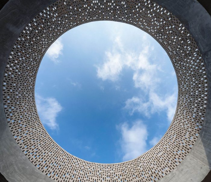 Located north of the city of Mérida, Yucatán, in a secondary street in Temozón Norte, Wóolis is a place that invites us to observe and remember our origins, a contemporary observatory that provokes us to discover the passage of time that can be seen in the lines that the sun and the upper lattice of the cylinder paint on the walls at different times of the day, traces that change their location during the year due to the varying inclination of the sun.