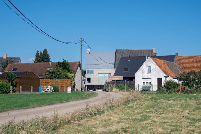 这座半独立式住宅的选址是城市边缘的一个小型的、最近的分区的一部分,填补了带状发展中的最后一个缺口。它坐落在一个沙脊上,那里曾经有一个风车。今天,该地区典型的农村景观仍然可以在散落在城市扩张中的碎片中看到:一个历史悠久的农庄,像小区对面的旧人行道,以及田野上意外的视野。