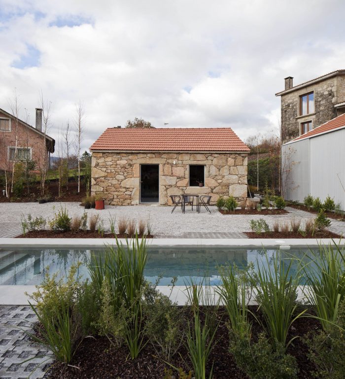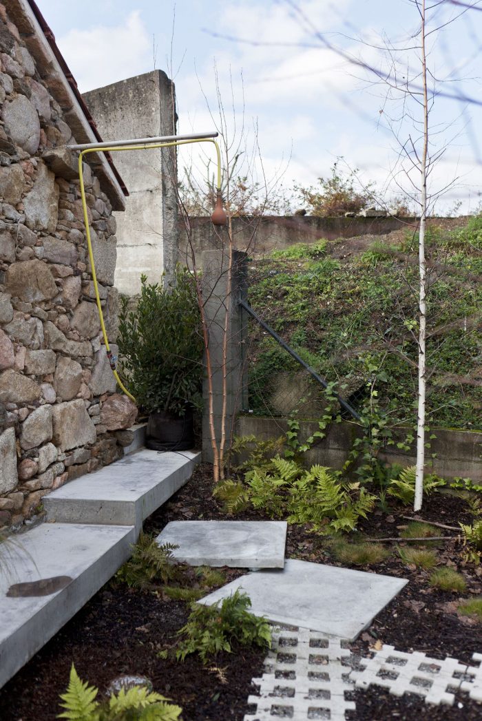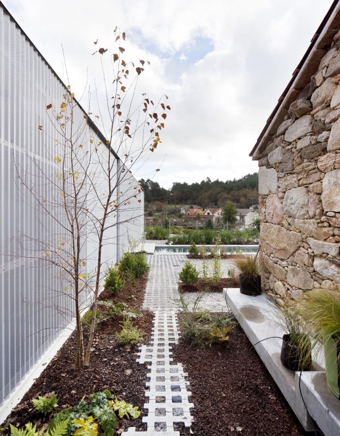 El espacio delimitado por las dos edificaciones responde a un tradicional esquema de eira o curral, convirtiéndose en un elemento de conexión e interacción entre las dos piezas. Esto permite abrir en su totalidad las estancias comunes de la vivienda al exterior y acentuar ese factor de conexión, fluidez y continuidad.