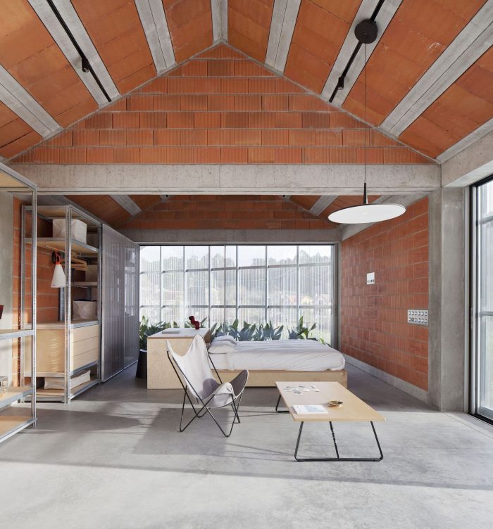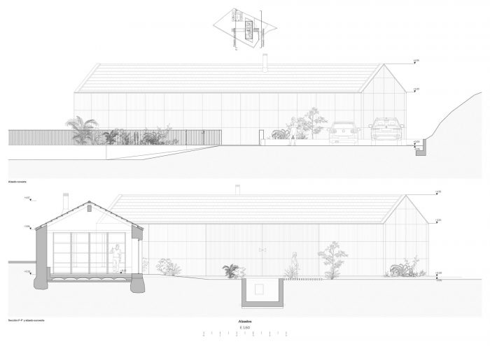 The transversal position of the new building compared with the already existing one and dominant axis of the plot aims to understand the piece like a conceptual limit between public and private space. This way, a sequence of ambiguous spaces is generated that subtly increases the levels of privacy and intimacy, without the need to create overacting fence solutions. The area defined by the two buildings responds to a traditional galician scheme called “eira” or “curral”, becoming an element of connection and interaction between two pieces. This allows to fully open the common rooms of the house to the outside and accentuate that factor of connection, fluidity, and continuity. Rooms with higher levels of privacy, like bedroom and bathroom are placed on the guides, connecting with exterior through two inner courtyards. In relation with the building form, it adopted the humble, simple, and honest tone of the existing building, expressing itself through codes more typical of an industrial building than a house. Even though each building belongs to a different period, both share the same formal sobriety, making them as volumes with closed and solid appearance, avoiding superfluous and unnecessary constructive solutions or materials. This pattern continues in the interior, with a whole space where furniture defines the uses in each room, without needing to make interior divisions. This constructive transparency and sincerity is reflected in the interior finishes, where materials that conform walls, slabs and roof plans are shown naked, without complexes, looking for the dignity of what is useful and necessary.