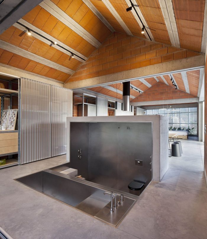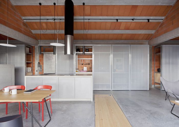 这种模式被延伸到内部,配置了一个单一的自由空间,其中的设备部件定义了每个点的用途,而不需要内部的划分。这种透明度和建设性的诚意反映在室内装饰上,在墙壁、地板和屋顶平面的建设中使用的材料是裸露的,没有复杂的东西,寻求有用和必要的尊严。
