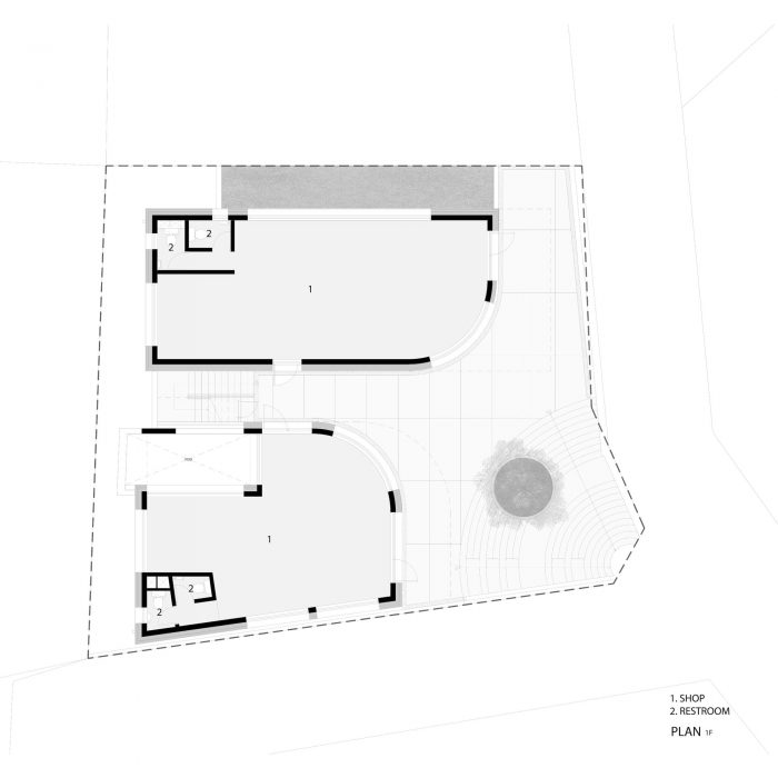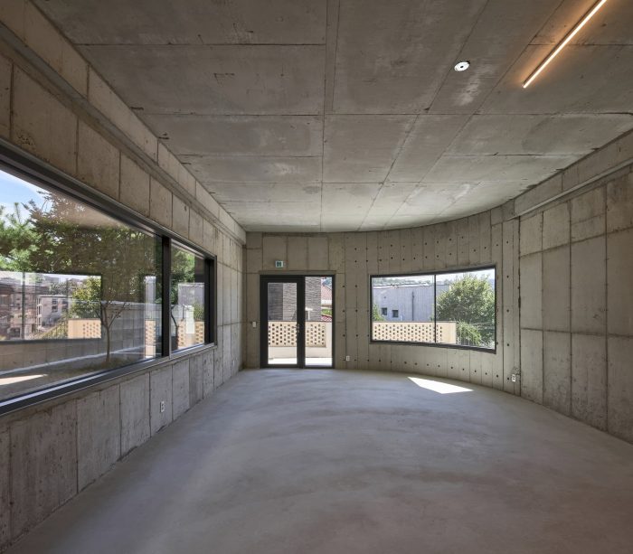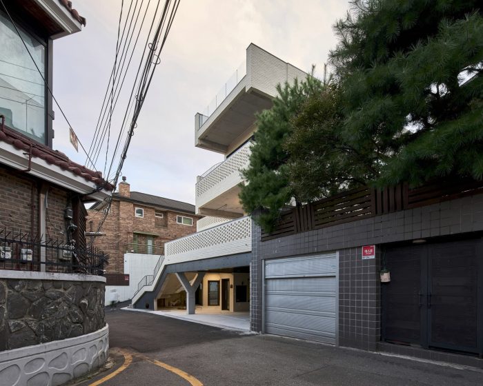 The changing residential landscape - Yeonhui-dong is a representative high-class residential area in Seoul. Currently, with the expansion of the commercial areas of Sinchon and Hongdae, lively commercial spaces are formed in calm residential areas, changing the existing atmosphere. The Y2 building is in a residential area formed on a hill off the main road. The area is an enclosed residential area surrounded by high walls and walls along the slope. However, the fact that the site is a corner of a slope was an advantage because the building could be recognized from the entrance of the alley. It was decided that if the building is actively incorporated with elements that can serve as a good face, it can have charm and attention that will attract people from the alleys.