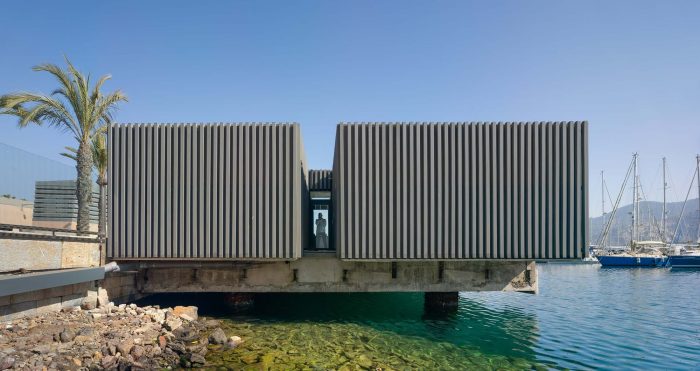 Within these walls, the stories that happened out at sea are told. A sea brought to land in its memory. The building pays tribute to all these architectures that once approached the sea to serve humanity: baths, dressing rooms, and changing rooms, which helped man so much in living in the sea.
