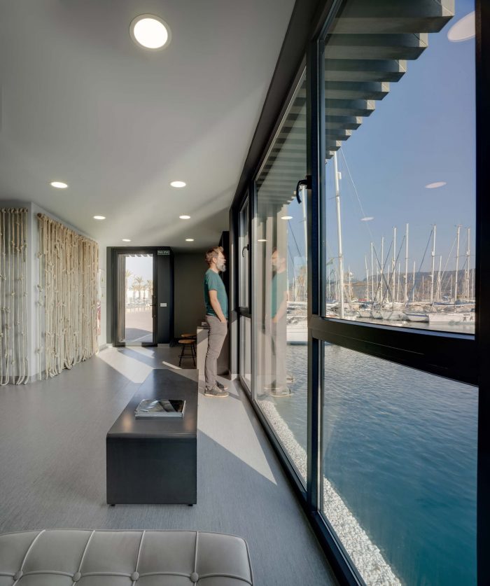 The sailors never leave the sea behind, even on solid ground. A large open room serves as a waiting area with its large window, oriented towards this purpose that unites them: the sea. This window is not for looking, but for transcending loneliness. This friendly sea becomes part of the inside, and the inside becomes the sea.