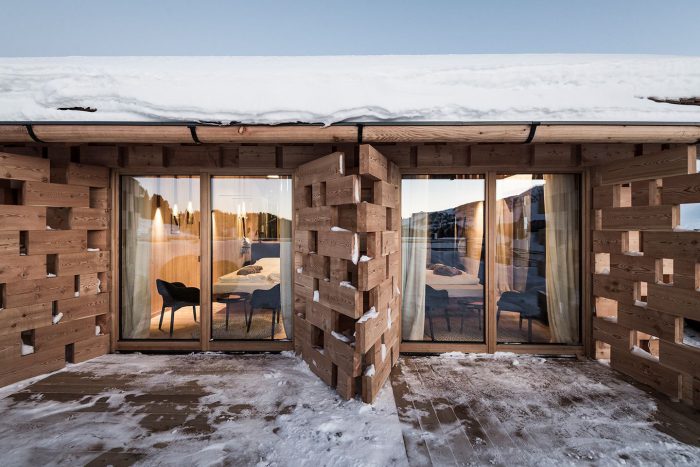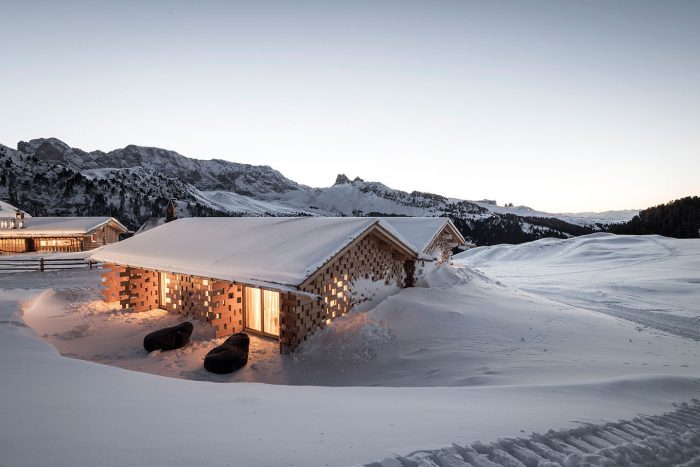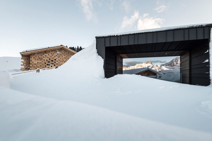 The new spa area is built on the grounds of the original barn as a separate building. The sauna is located in a wrapped space that reveals the openness of the interior. Looking through the window through a 45° angled window, you can maintain freedom of vision even in many snowfalls in winter, on Plattkofel. The lounge has a tea kitchen for comfort.