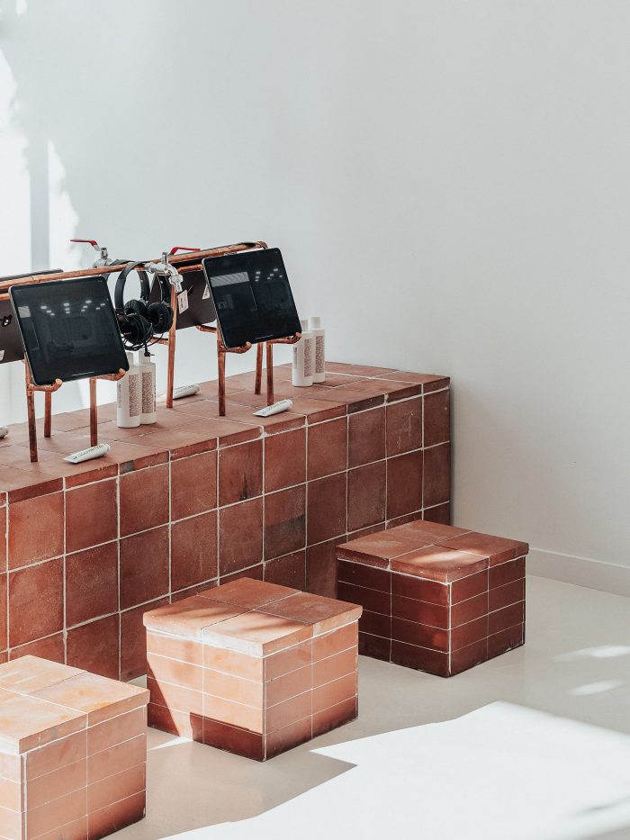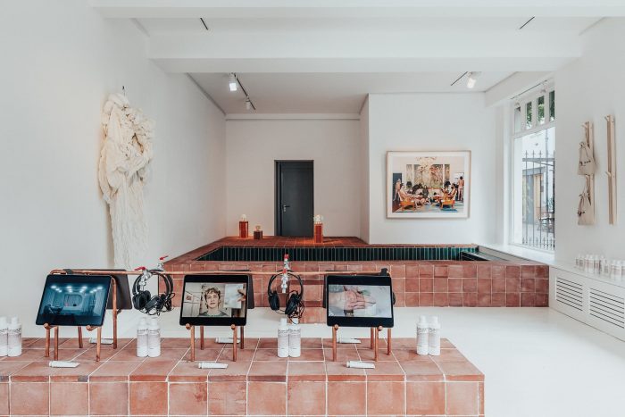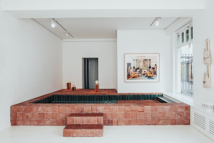 Local Collective and Stigma Room – a collective of architects, artists, and researchers – have transformed a ground floor retail into a contemporary bathhouse in Notting Hill, London, for skincare brand Malin+Goetz and the Arts Council England.