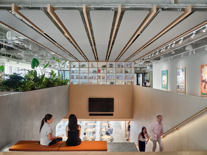 Health and wellness are integral elements of this workplace, featuring a “mini garden” and more biophilia across all spaces, to clean the air and create smaller parks and green areas, bringing people closer to nature to provide a healthy work environment. To humanize the workplace, Singaporean artists were invited to create custom artwork and murals, helping to deliver a culturally relevant and dynamic work environment infused with local influences.