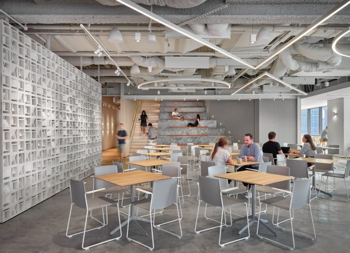它的设计灵感来自于欧洲城镇的原型,那里有一个大的、中心的、热闹的公共广场,吸引了大量的社交聚会,而附近则有更小、更亲密的社区。灵活的工作安排迎合了不同的个人和集体需求,包括基于团队的敏捷社区和所有工作站的高度可调的办公桌。
