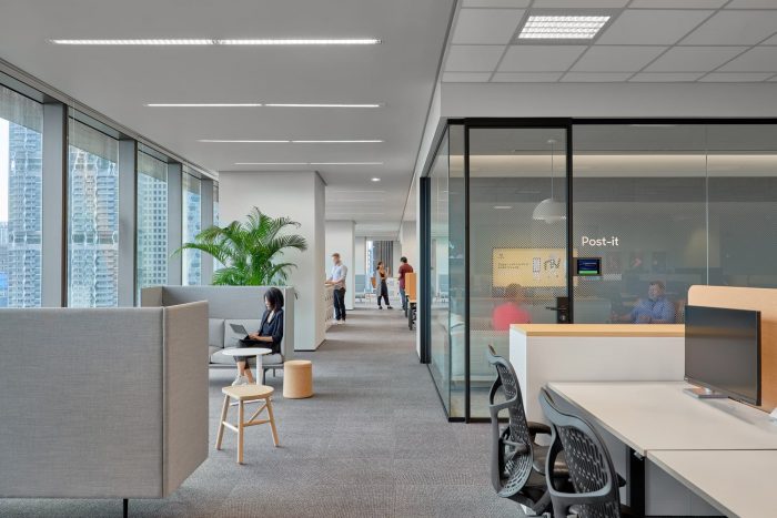 Its design inspiration stems from the archetype of European towns where a big, central, buzzing public square invites large social gatherings, while smaller, more intimate neighborhoods dwell in its vicinity. Flexible working arrangements cater to diverse individual and collective needs, including team-based agile neighborhoods and height-adjustable desks for all workstations.