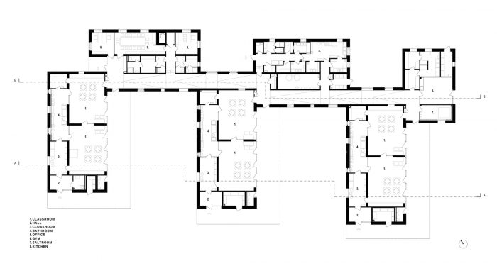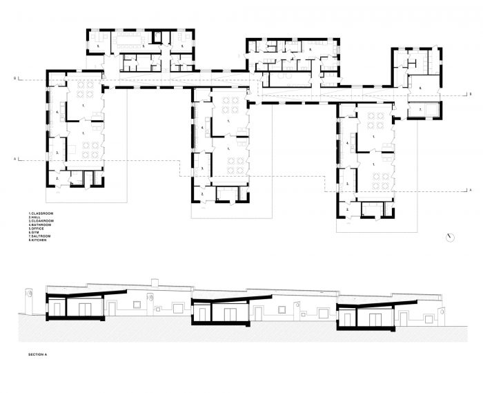 例如,翻新的烟道刺穿了橡胶包覆的外部操场,为儿童主动的和有指导性的游戏留下了空间。另一个特点是环绕建筑的触觉基座,并将窗户纳入儿童的高度范围,创造出内向的游戏角落。Zöldike托儿所项目并不是一个自以为是的形式主义项目,而是知识重构的直接结果。在宏观层面上,当加强当地青年与该地地下历史的关系时,或者在微观层面上,当选择不扼杀好奇心的材料时。