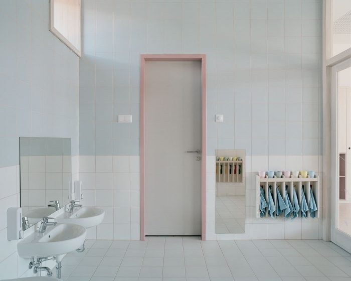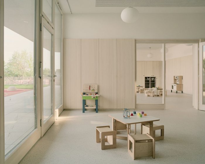 When it came to the articulation of the interior spaces, the architects kept in mind that children’s immediate environments have a profound impact on these early developmental years. In making interior design decisions, it was important that the materials and spatial arrangements promote positive interactions with the built environment. Instead of spending the majority of the budget on an extravagant, public exterior, high-quality materials and finishes were prioritized. Besides the special attention paid to material and color choices, the project contains a series of interesting features that hope to engage the imagination of the children.