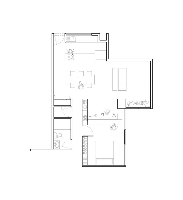 In the context of a time when one of the most important companies in Big Data announces a new era accompanied by what they call the “Goal”, in which we will no longer have to commute to work, travel or coexist (everything will be within reach with the use of VR headsets), we have been commissioned to remodel a space in the apartment of a building located on Zurich street, to transform it into a warmer place, where inhabitants can find a sense of spirituality within the city's “chaos”, through the renovation of a bedroom and a new home office space.