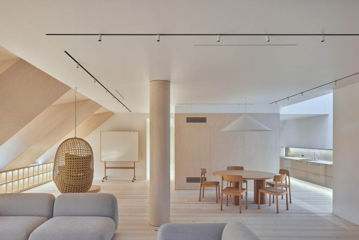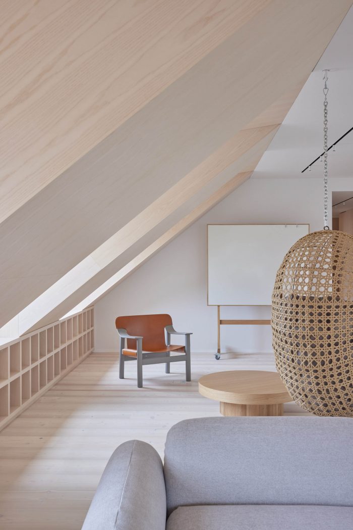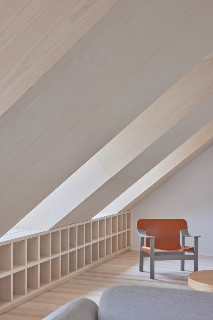 阁楼空间给了公寓一种独特的感觉,但也带来了一些挑战。深邃的窗洞和小窗户创造了舒适的阁楼空间,但限制了光线进入房间。因此,室内的色调被选择为明亮、温暖、自然。