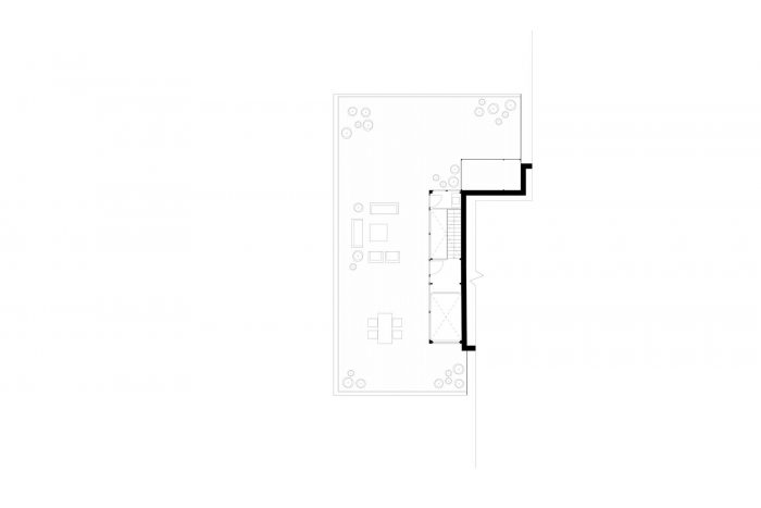 通往屋顶露台的出口为公寓最黑暗的部分带来了光明。在这里,楼梯旁边是一个充斥着自然光的厨房。厨房与客厅相连,家庭生活、工作和休闲的所有主要功能都宽敞地分散在这里。